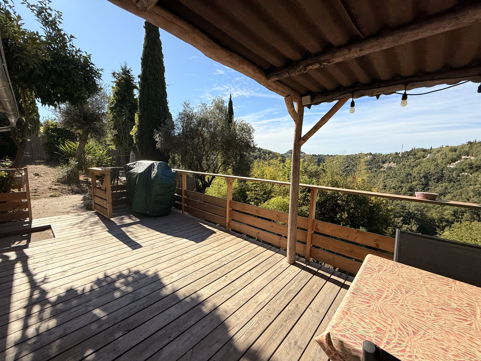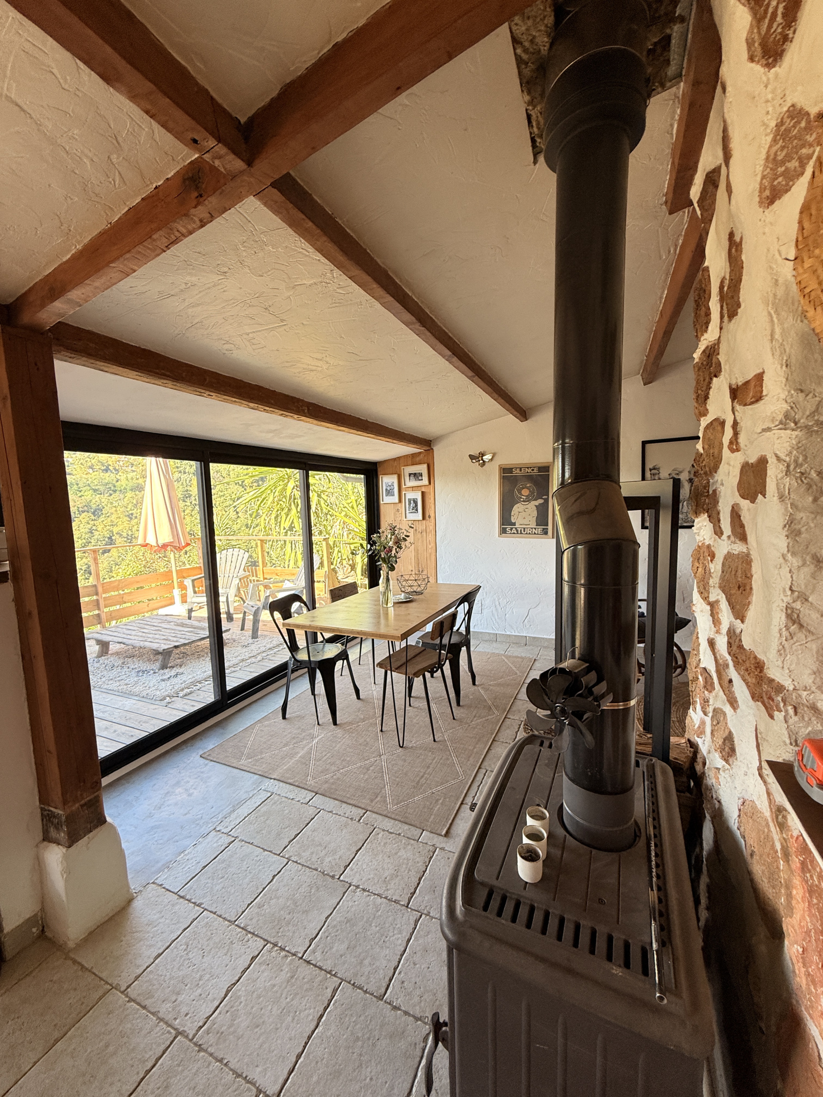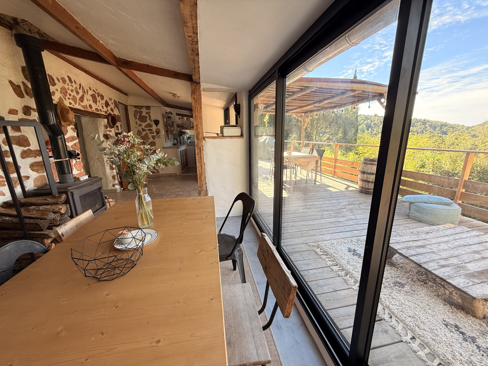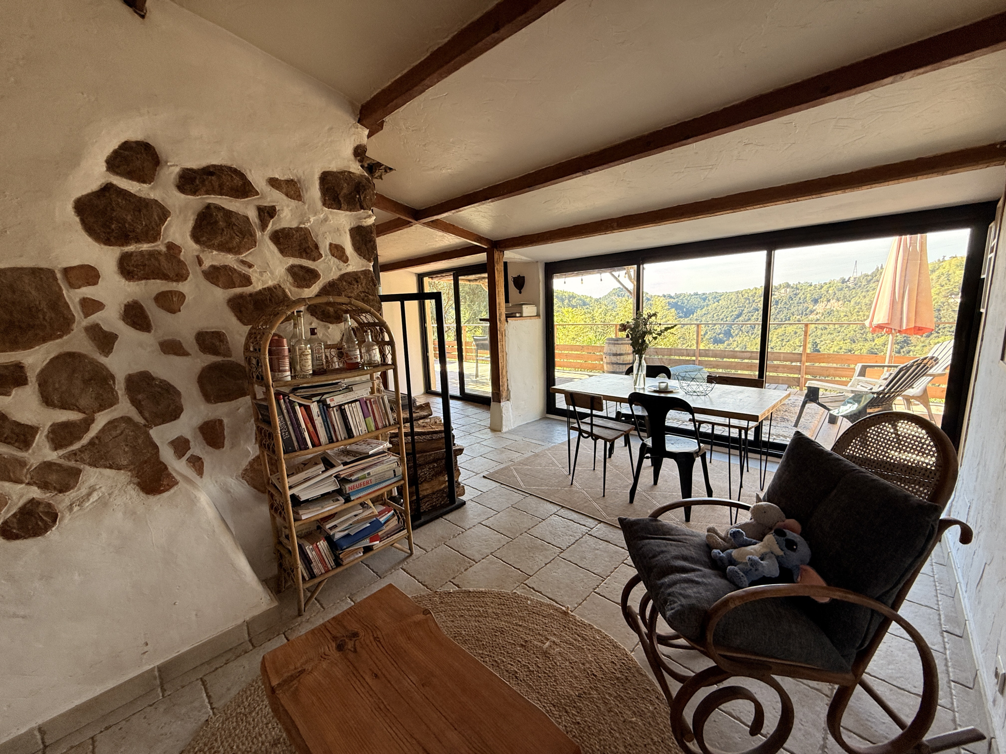 Grande terrasse avec vue dégagée sans vis à vis. Caves + une pièce indépendante avec douche et wc à rénover.