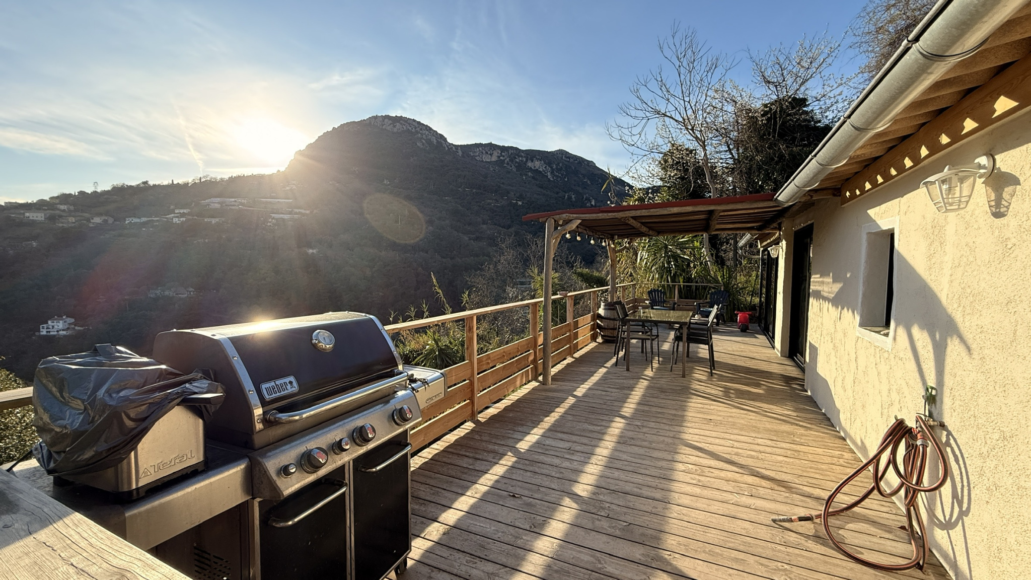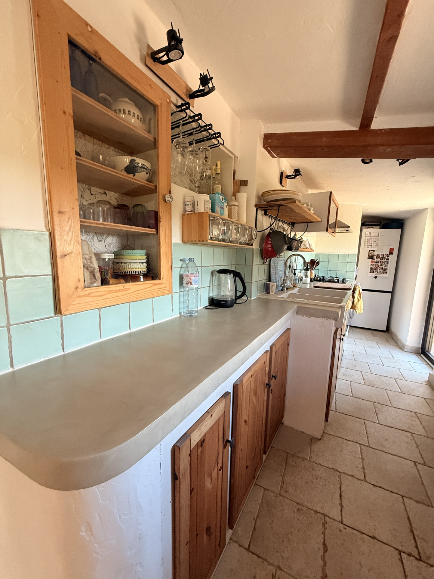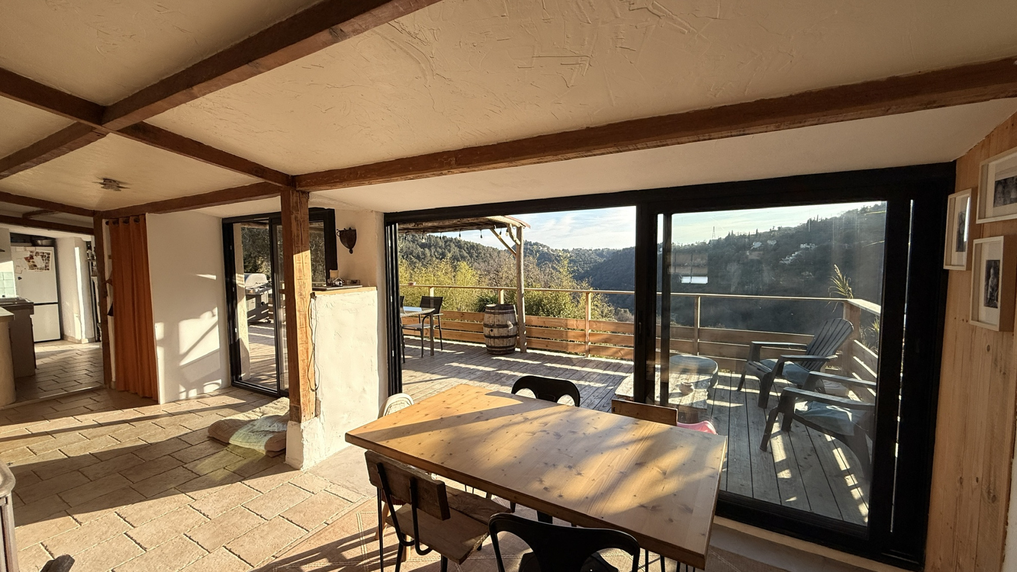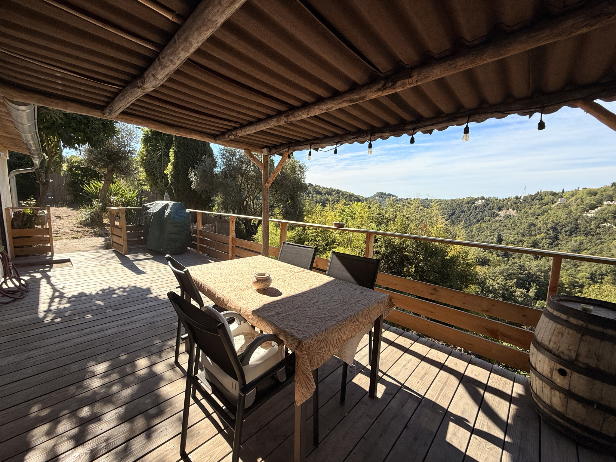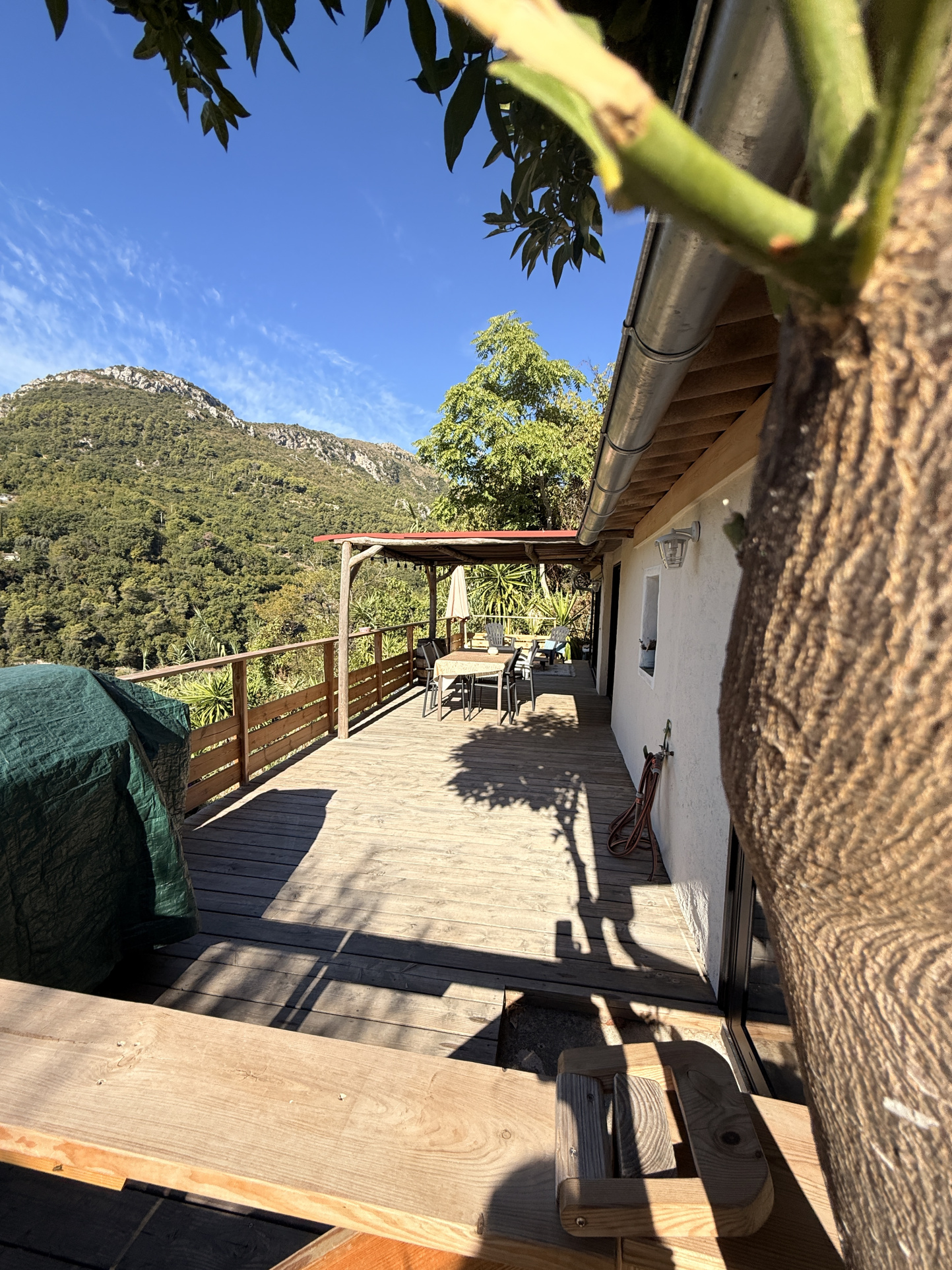 Grande terrasse avec vue dégagée sans vis à vis. Caves + une pièce indépendante avec douche et wc à rénover.