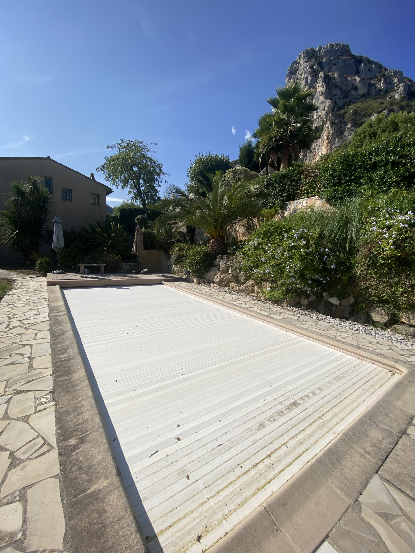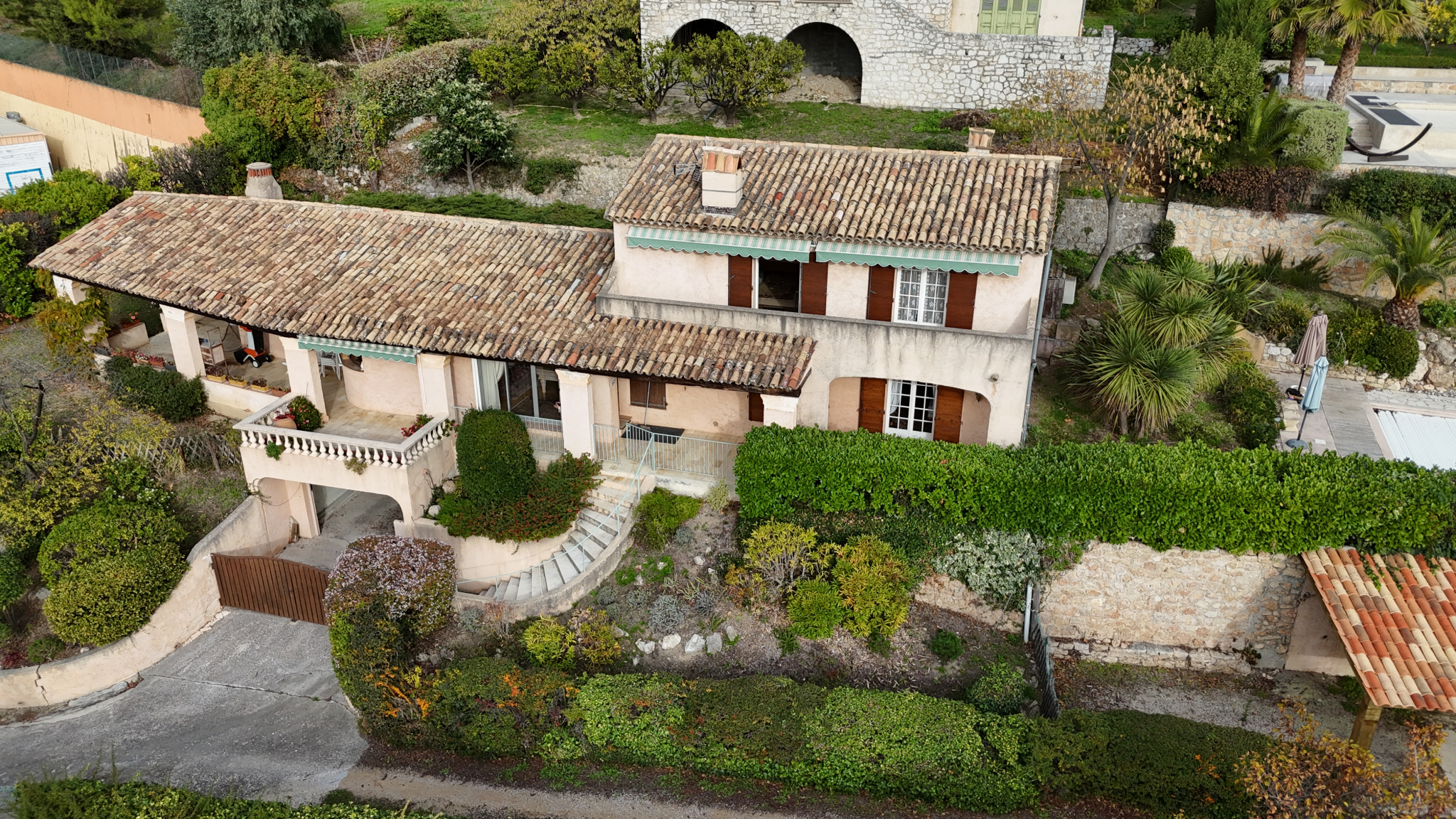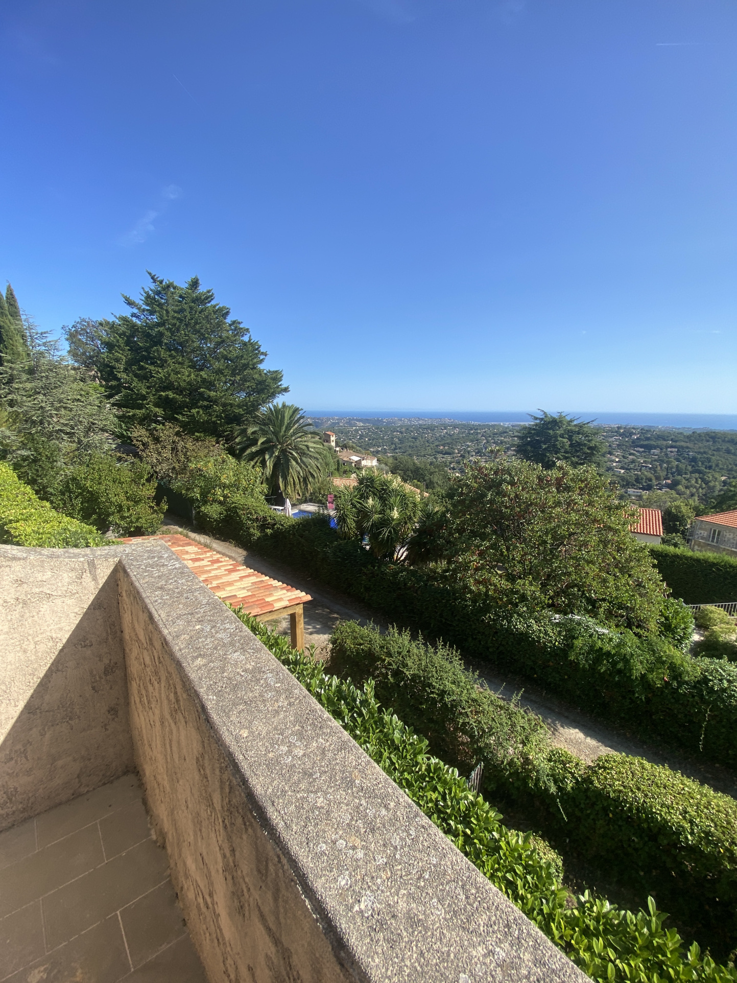 Au coeur du village de St Jeannet, villa individuelle avec magnifique vue mer. Au rdc: entrée, wc invité, grand salon/salle à manger, cuisine séparée donnant sur une terrasse couverte, arrière cuisine et chambre parentale avec salle de bain (douche, baignoire et wc). Au 1er étage: 2 grandes chambres avec terrasses, salle de bains avec wc. Garage, cave, psicine et abri voiture. Terrain de 1636m2. Accès voiture. Tout à l'égout.