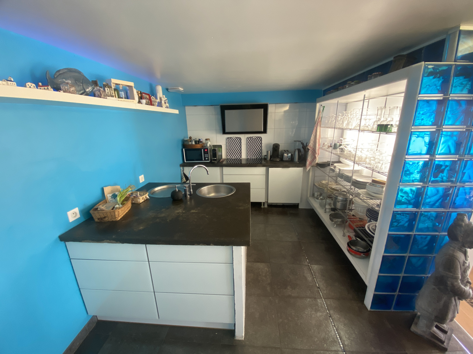 - 3P avec séjour et cheminée, cuisine séparée, 2 chambres, sdb et wc indépendant. Grande terrasse avec vue mer.