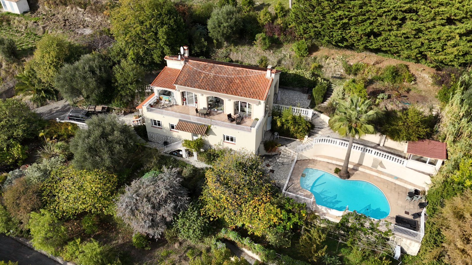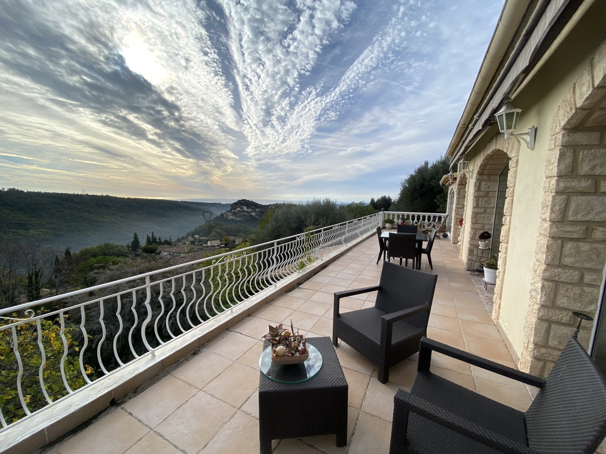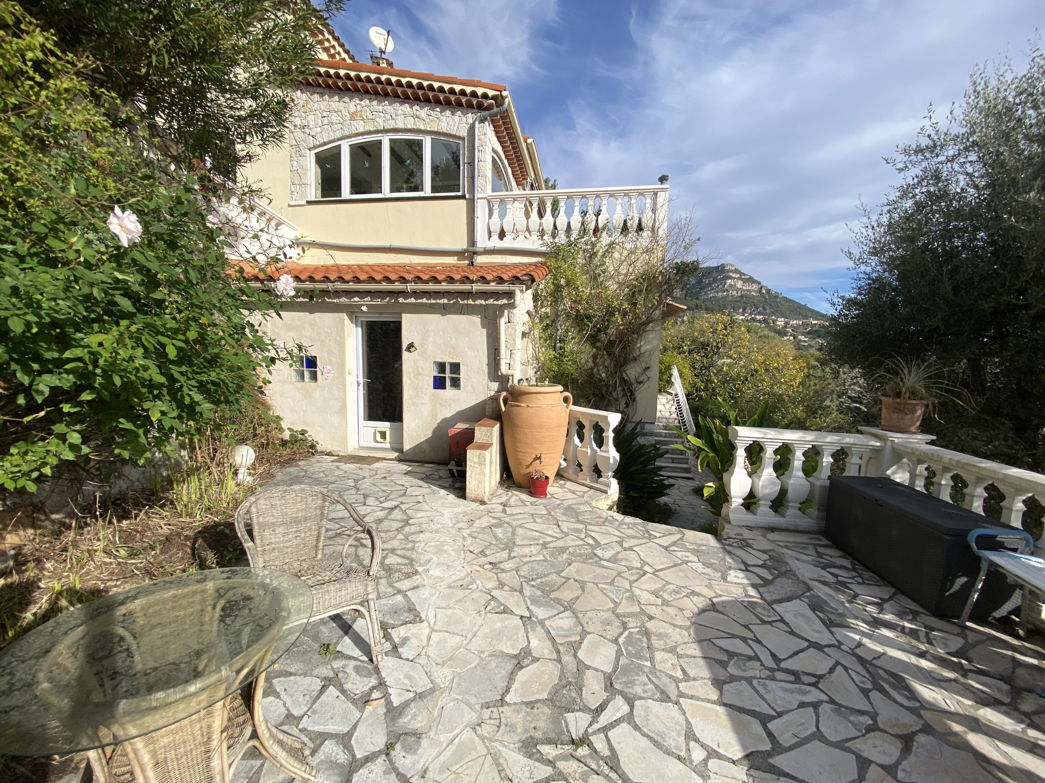 Belle villa proche St jeannet et Vence, comprenant : Une belle pièce de vie : séjour avec salle à manger, cuisine aménagée et équipée us, placard, w-c. Large terrasse.